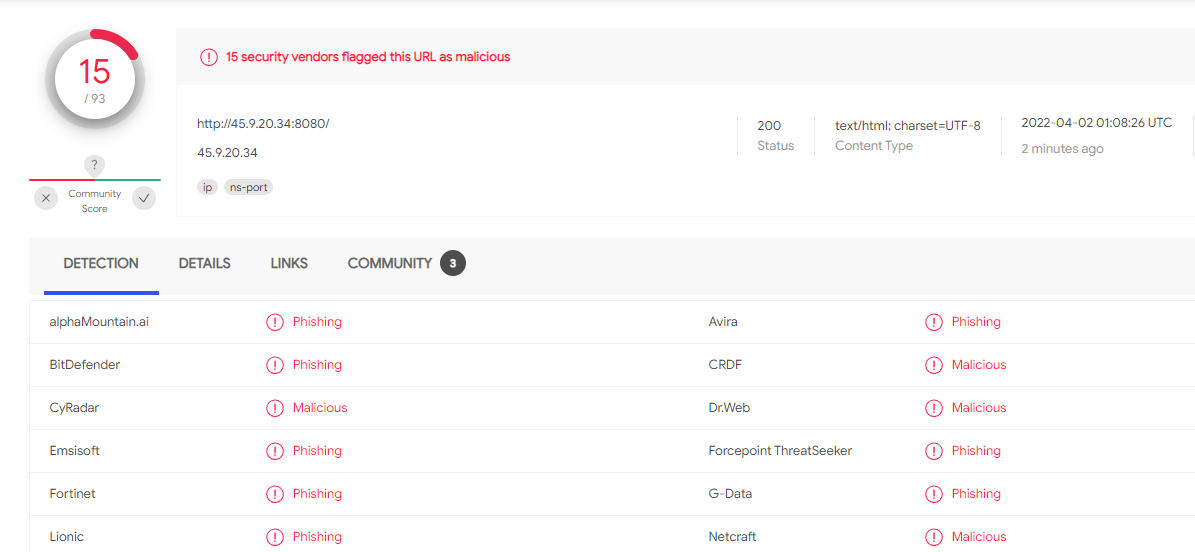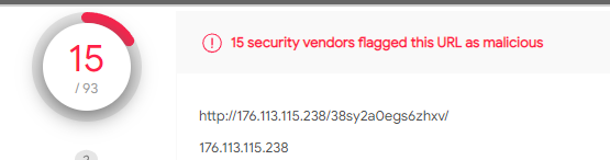 As you can see when you land on the page you get immediately redirected to another IP: 176[.]113[.]115[.]238/38sy2a0egs6zhxv which virustotal also already finds malicious: