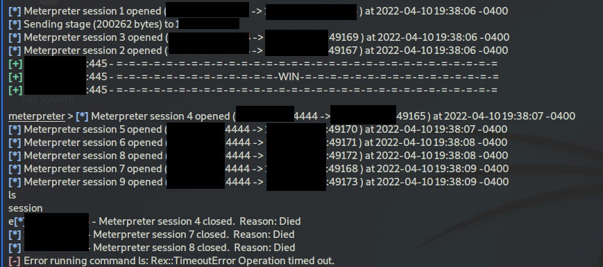 After getting a successful exploitation with this payload, however, there would be an infinite spawning of new meterpreter shells that caused the msfconsole to hang and not be able to do anything else.