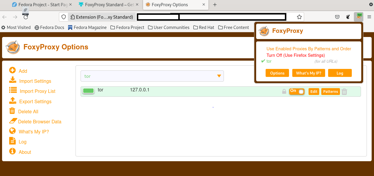 Save it and turn it on by clicking the foxyproxy icon again and then clicking on your creation. Reload the page and then click on the icon again and click "what's my ip?". If you see that your IP is different and probably in a different country, then you were successful.