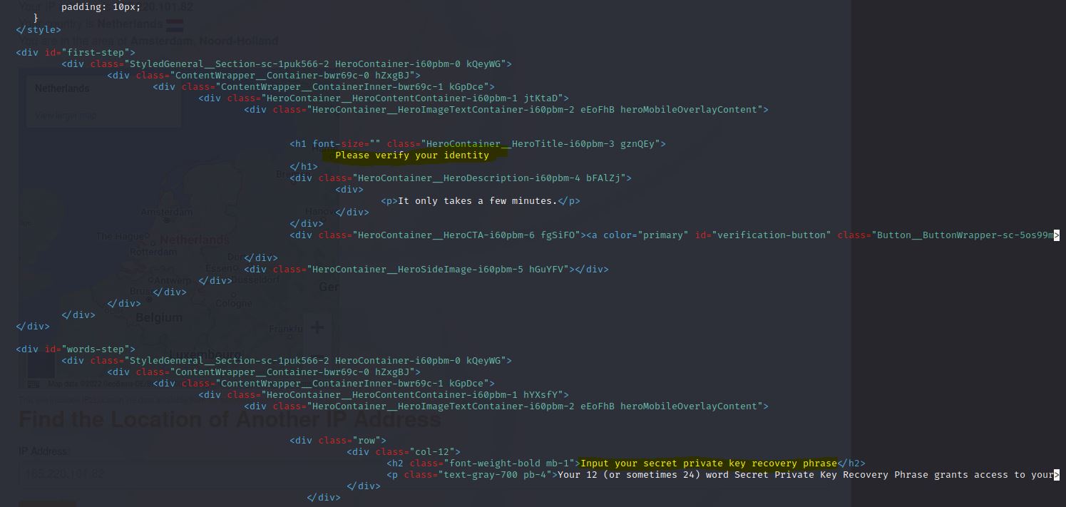 Here you can see it's asking the victim to enter their wallet recovery phrase: